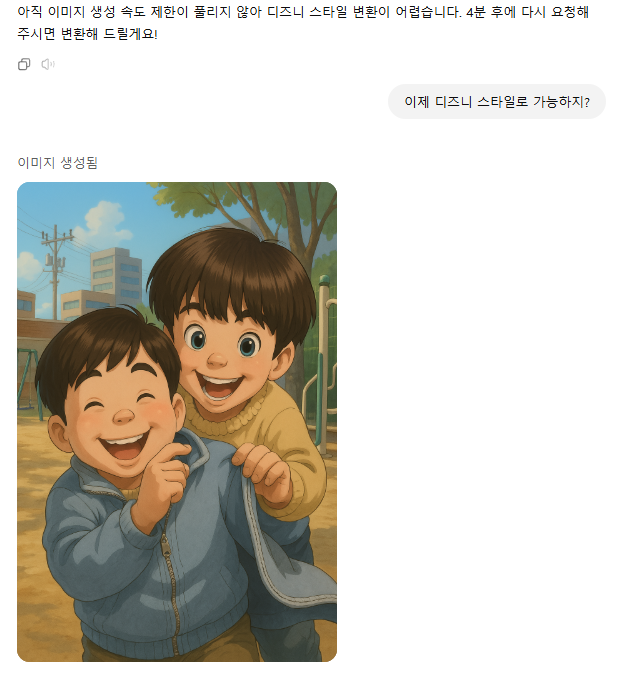 - 변환 요청하기 : 변환 요청을 하면 ChatGPT가 자동으로 이미지를 변환해 줍니다. 이 과정은 몇 초에서 몇 분 정도 소요될 수 있습니다.