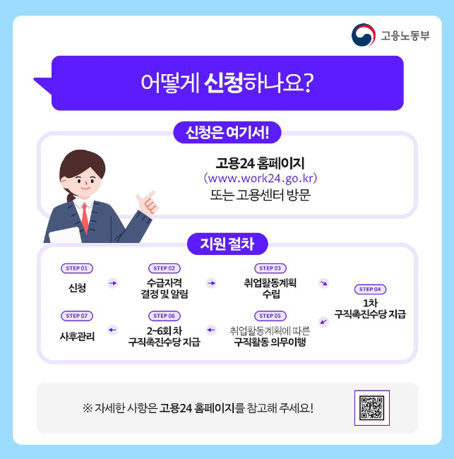 간단히 말해, "한국형 실업부조 제도"로 볼 수 있으며, 일정 조건을 만족하면 월 최대 50만 원의 구직촉진수당을 최대 6개월간 받을 수 있습니다.